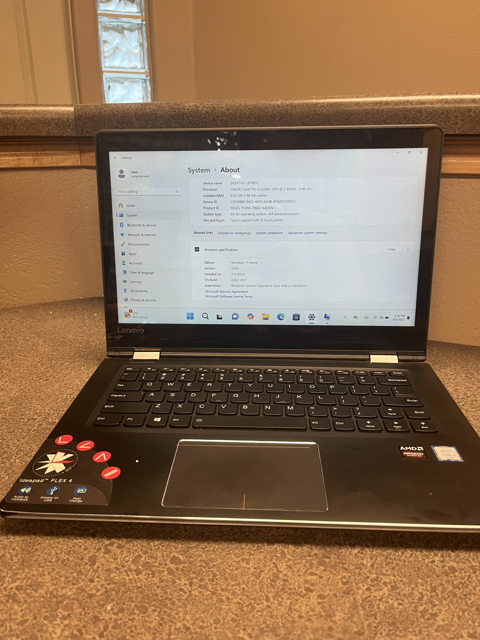 Lenovo Ideapad Flex 4 Laptop$40.00 1 in stock Lenovo Ideapad Flex 4 Laptop quantity Add to cart SKU: 240614A Category: Computer Equipment Tag: laptop Description Description 240614A MP14MMUL i5-6200U 8 GB RAM 198 GB Storage Touchscreen Windows 11 Home Related products Computer EquipmentAcer Aspire 5 Laptop $50.00 Add to cart Computer EquipmentLenovo Ideapad Flex 4 Laptop $40.00 Add to cart Computer EquipmentAcer V246HQL 24″ monitor $25.00 Add to cart